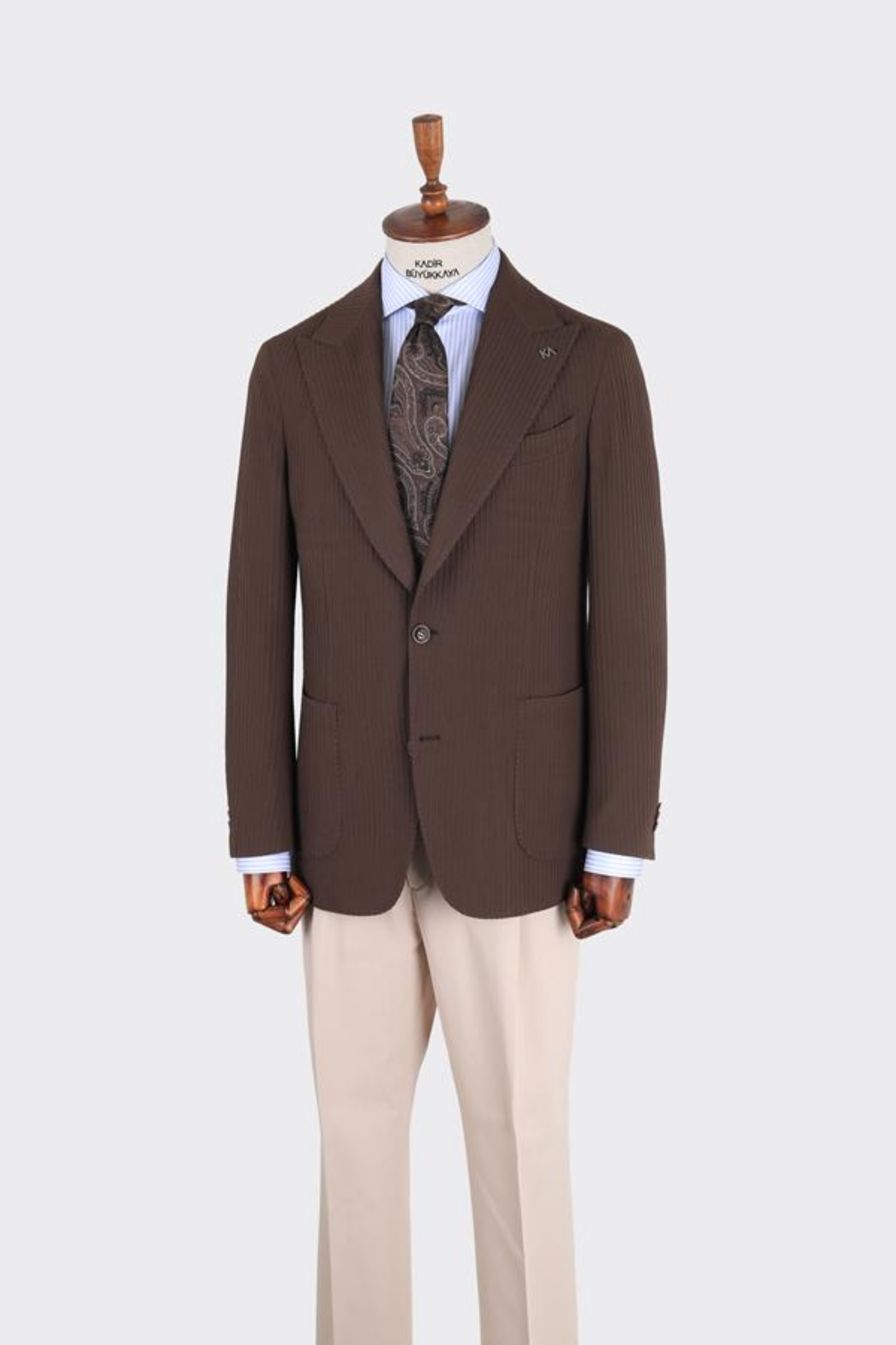 İki düğme ceket 6 drop ve kırlangıç yaka modelinde olup , nefes alabilir ve dört mevsim kullanıma uygundur. Ürün içeriği tek ceketten oluşur. Çift düğme, napolitan omuz ve çift yırtmaç modeli uygulanmıştır. Logomuz olan KA yaka rozeti bulunmaktadır, istenildiğinde çıkartılabilir. Hem klasik hem spor kombinler için tercih edilebilir.