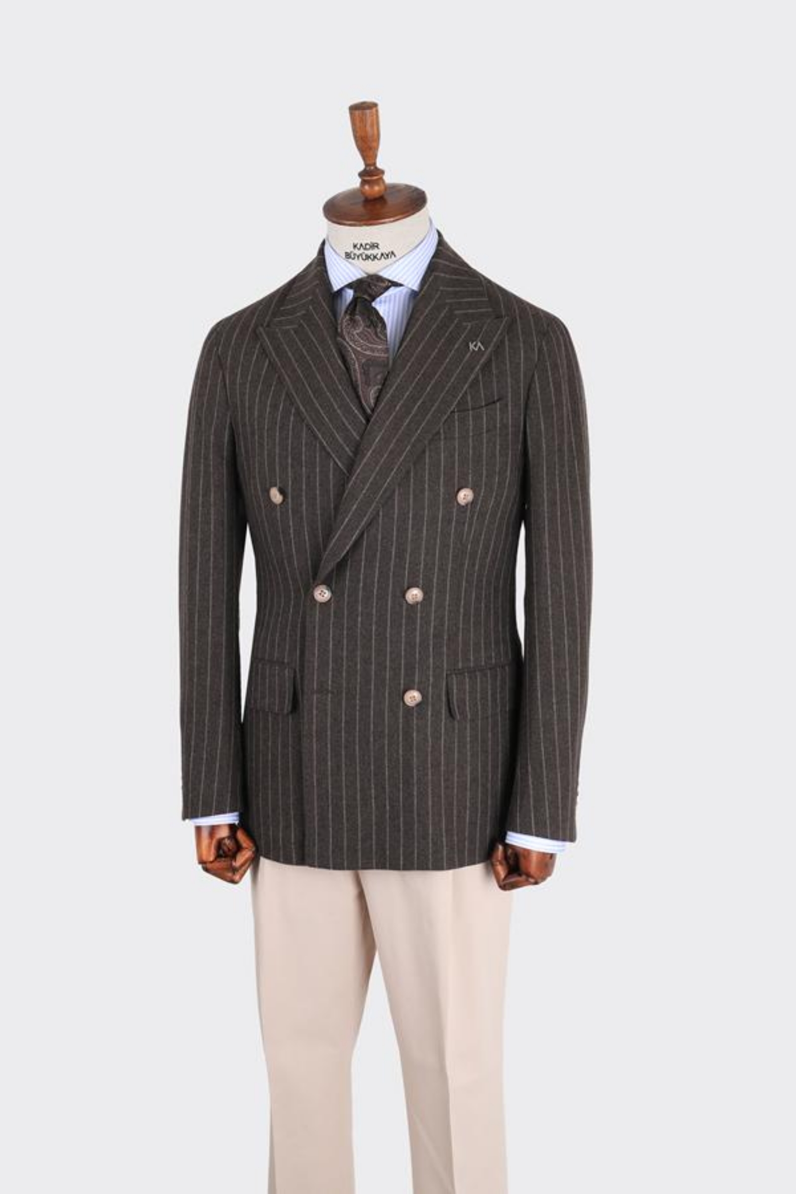 Kruvaze ceket 6 drop ve kırlangıç yaka modelinde olup , nefes alabilir ve dört mevsim kullanıma uygundur. Ürün içeriği tek ceketten oluşur. Ceket 6 düğme kruvaze, napolitan omuz ve çift yırtmaç modeli uygulanmıştır. Logomuz olan KA yaka rozeti bulunmaktadır, istenildiğinde çıkartılabilmektedir. Hem klasik hem spor kombinler için tercih edilebilir.